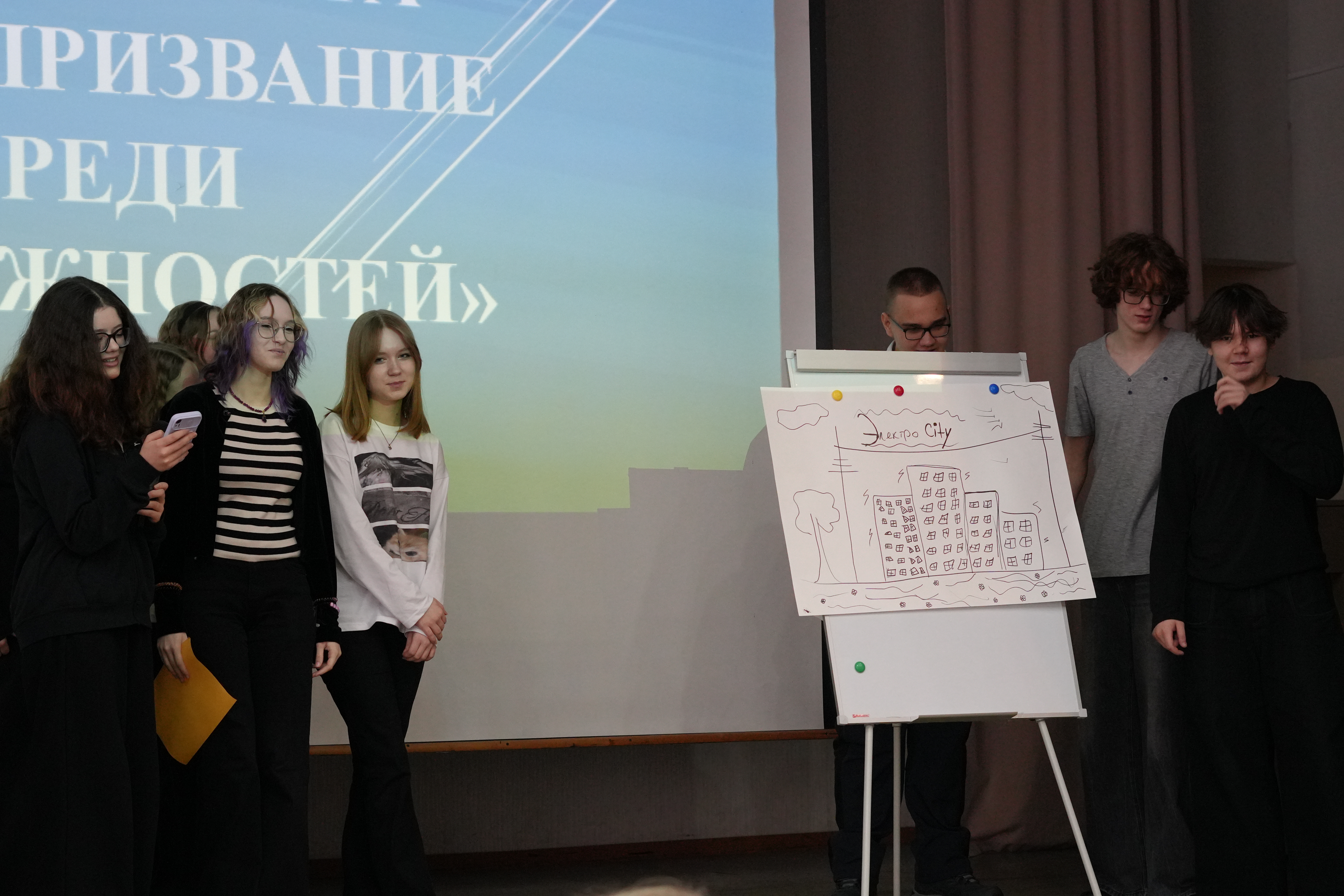 Школьники погрузились в мир профессий будущего, решали реальные бизнес-задачи, придумывали свои собственные бизнес-идеи и создавали их визуальные концепции, рисуя логотипы и рекламные материалы.
