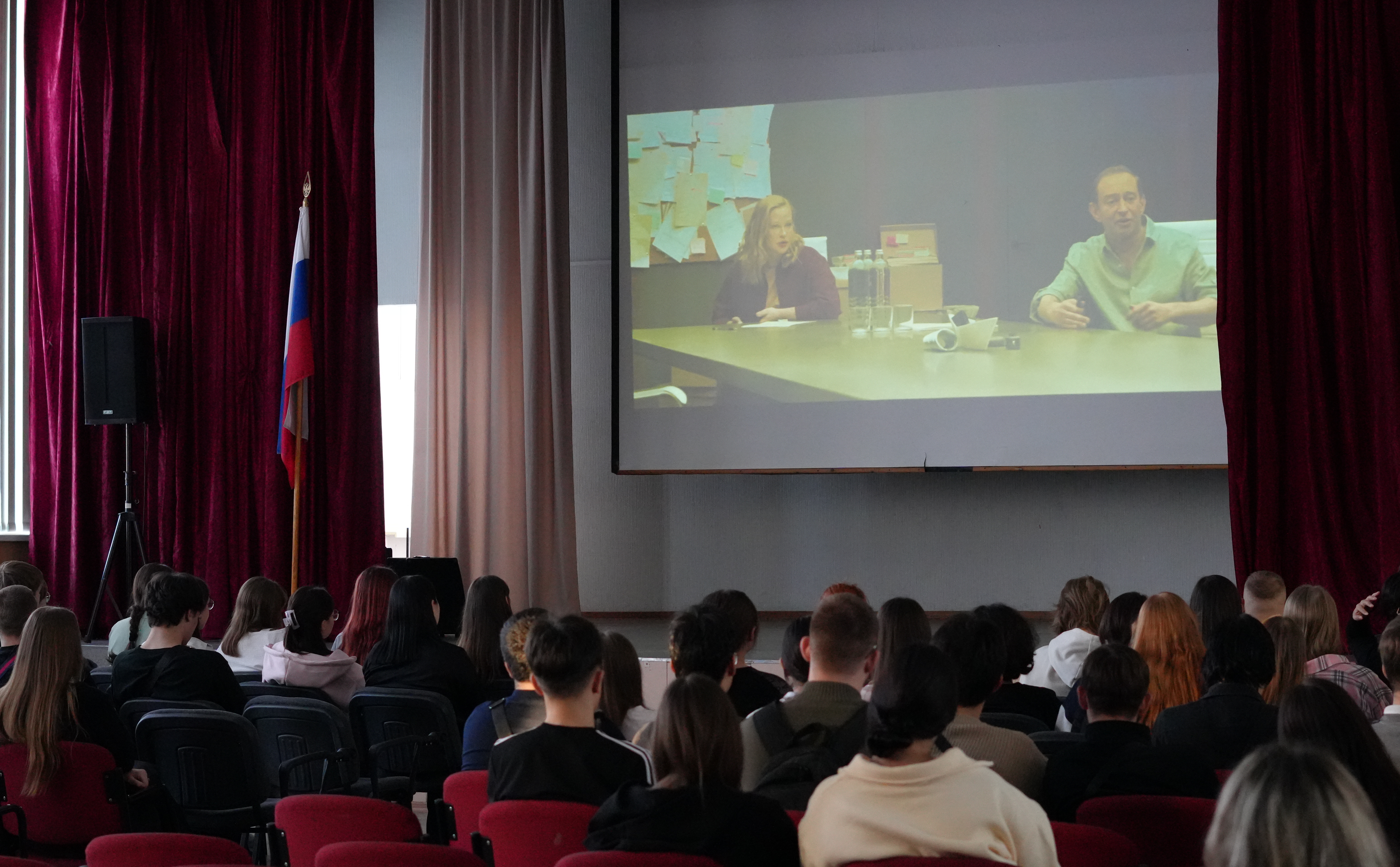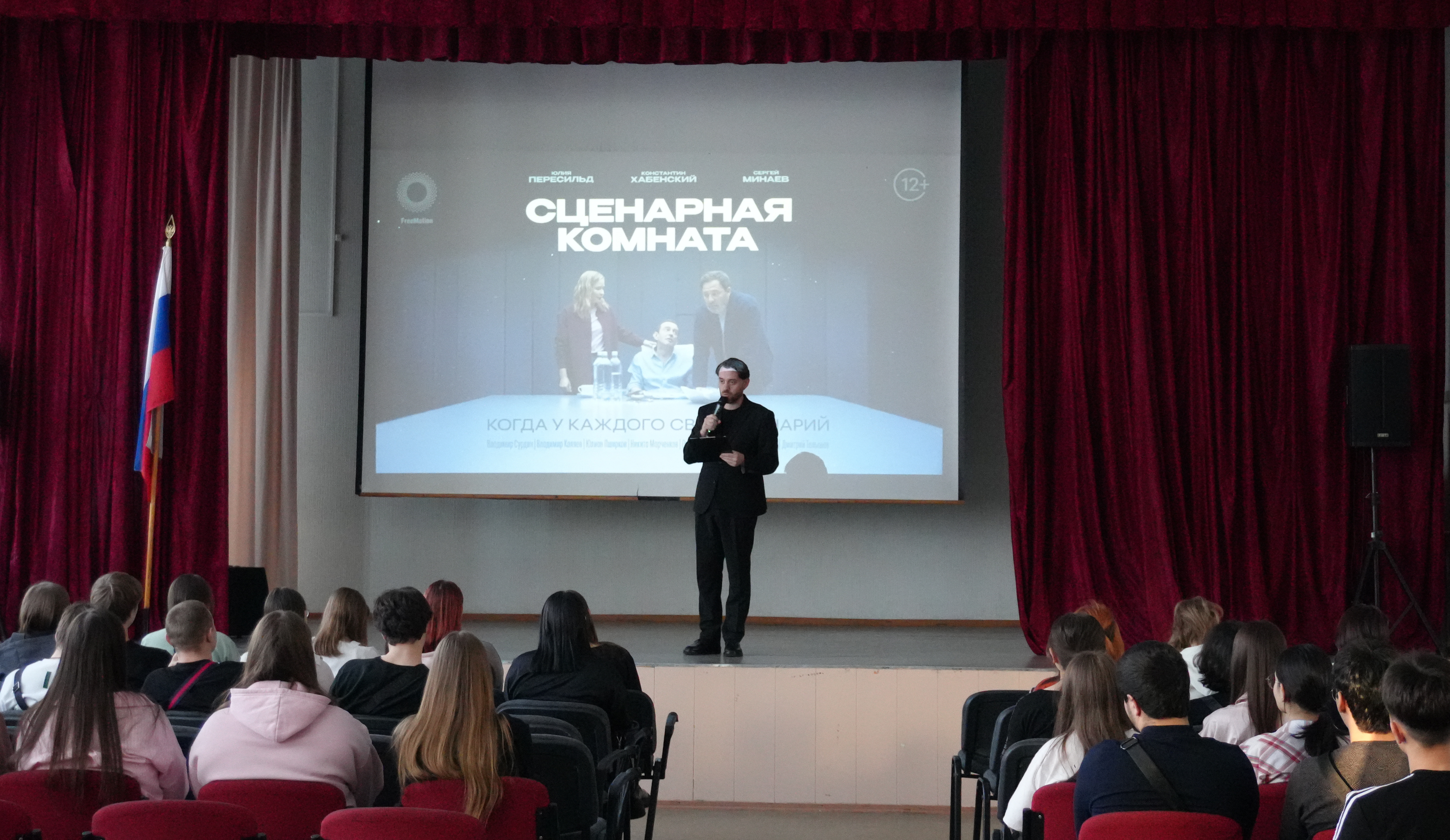 Вместо привычной лекции состоялся показ короткометражного фильма «Сценарная комната» с участием известных российских актёров Константина Хабенского, Юлии Пересильд и Сергея Минаева. А сразу после титров — интерактивный квиз на внимательность.
